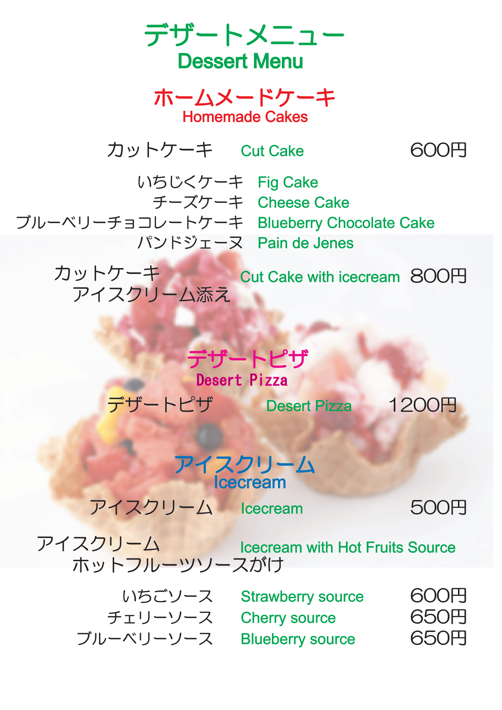 デザートメニュー