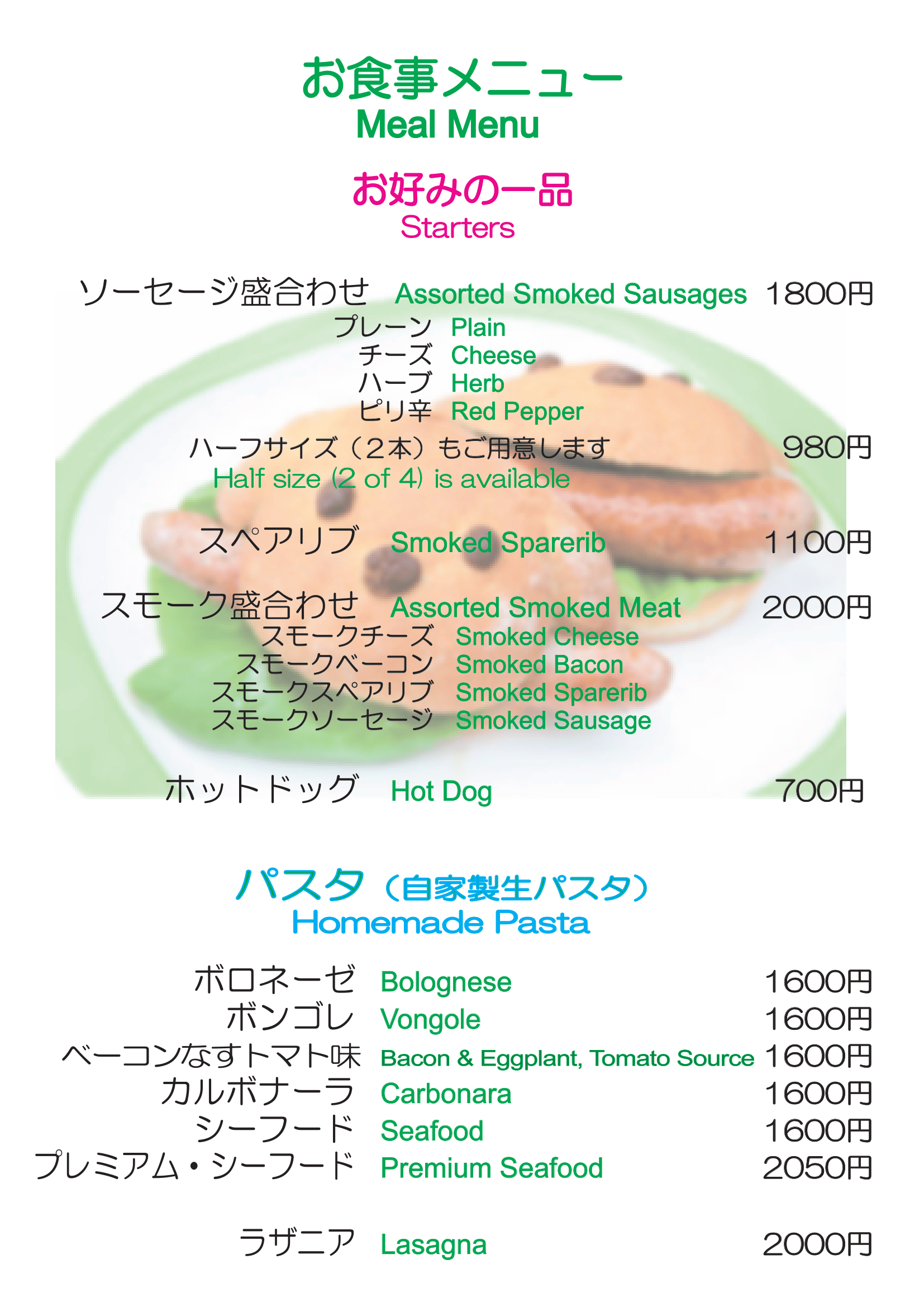 お食事メニュー